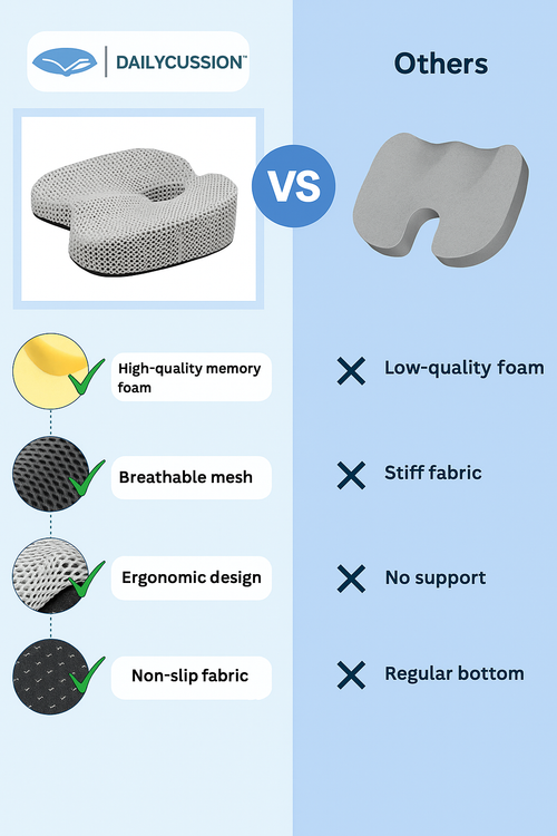 The memory foam inside our ReliefEase is made from high-quality cotton that adapts to the shape of your back muscles. The cushion comes with a removable cover that is soft to the touch and well-ventilated.