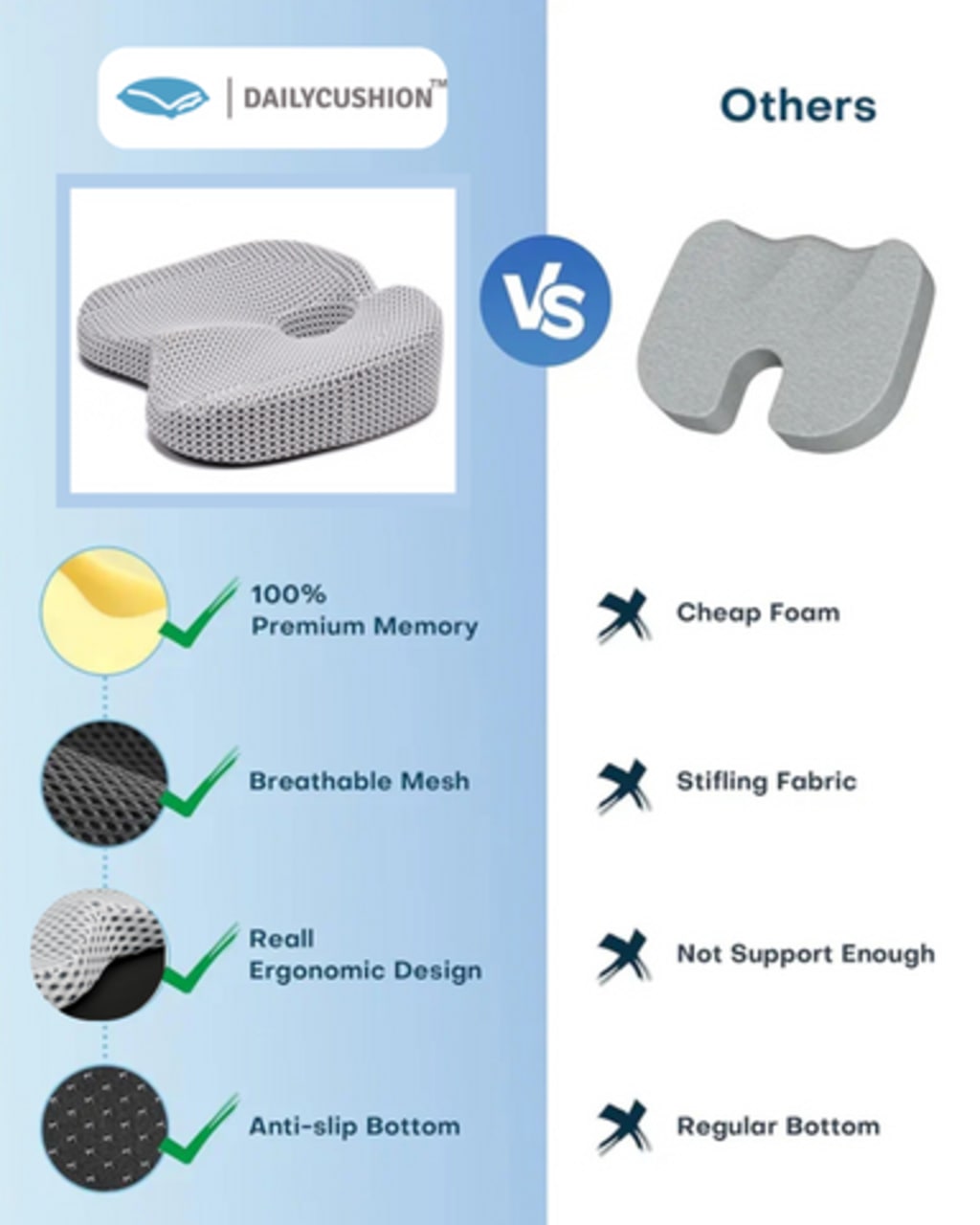 By using our ReliefEase on a daily basis, you help straighten your spine, prevent lower back pain and hemorrhoids. It improves your comfort, even during long periods of sitting in front of the computer or on long car rides.